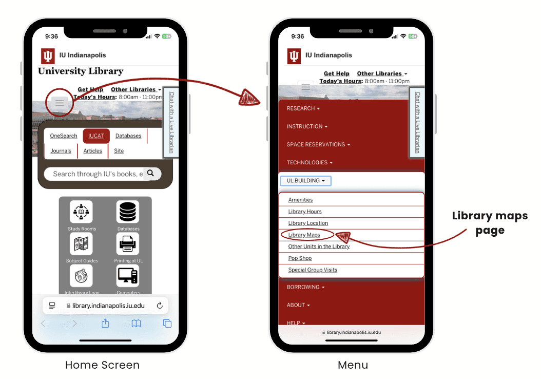 Students at IU struggle to discover and confidently use the online library maps due to low visibility, poor mobile usability, and confusing design.